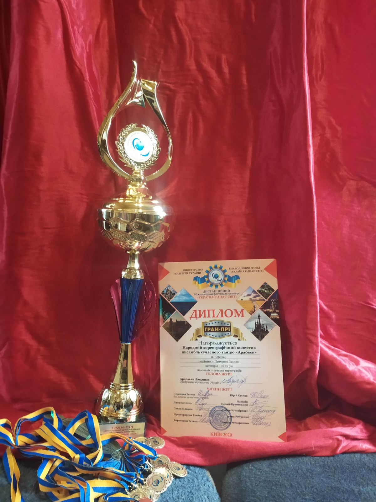 Вихованки Народного художнього колективу гуртка класичного танцю «Арабеск» (керівник Галина Пупченко) Чернівецького обласного центру естетичного виховання «Юність Буковини» здобули найвищу нагороду – «ГРАН-ПРІ» в дистанційному міжнародному фестивалі-конкурсі «Україна єднає світ», який проходив 25.04-4.05 2020 року в місті Києві.