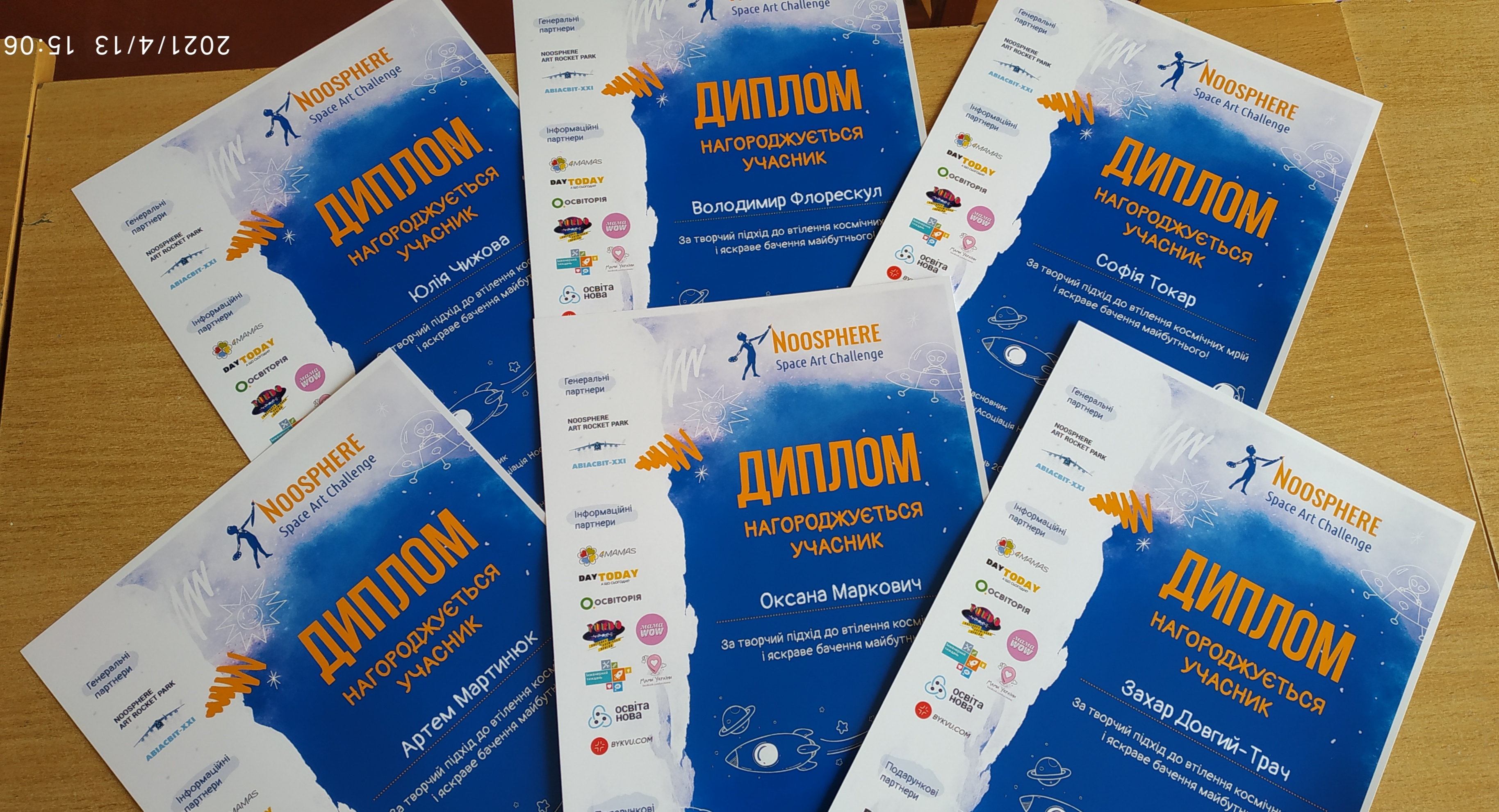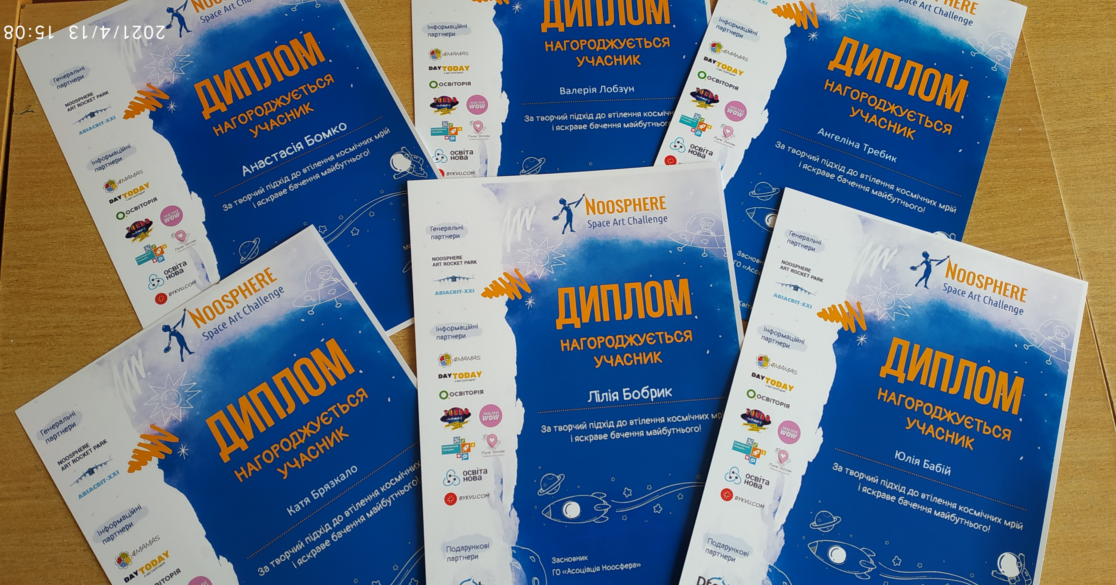 12 квітня, у День космонавтики, було оголошено підсумки конкурсу. Кращими було названо 9 переможців, які отримали Дипломи І. ІІ та ІІІ ступеня. Організатори подякували всім, без виключення, учасникам, а їх було надзвичайно багато – аж 14854!